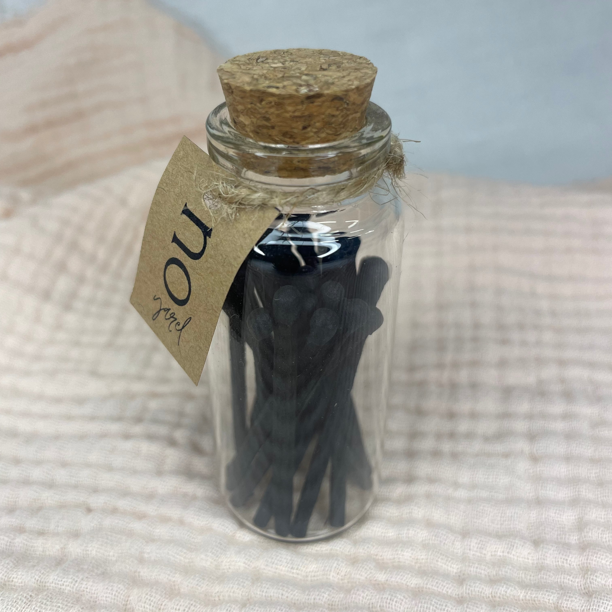 Les fioles en verre et liège se composent d'une vingtaine d'allumettes en bois à bouts colorés. Un grattoir est disposé à l'arrière permettant l'allumage.